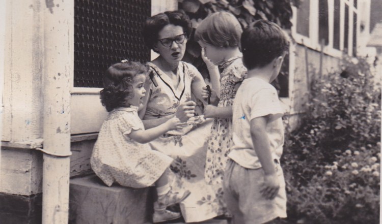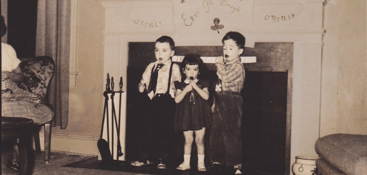 The first episode of the Life of Reillys is about my getting lost as a two-year-old kid in a house of ten people. The photo below is my mother sitting on the back step of our house in D.C. with me beside her and my brother Kevin in the foreground. If anyone knows who the little girl in the pretty dress is, please comment! Click here to read Lost.