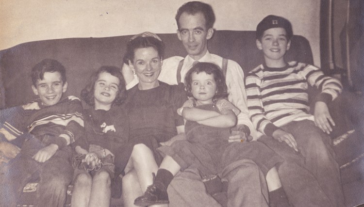As hard as it is to describe Midge Reilly, mother of the entire brood, I’ve begun in this episode. She was a house-painting, priest-challenging mama lion. There are sure to be more episodes on her in our future. The photo below is my mother and father when they only had four children. Click here to read Heights.