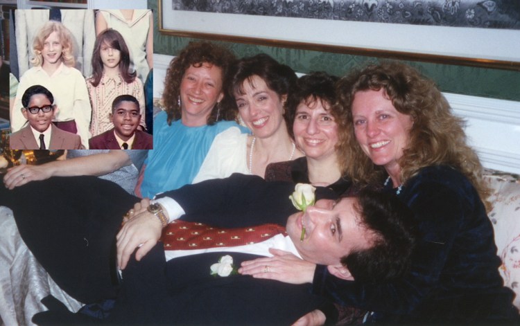 The summer of ’67 was a great year — I met some of the dearest friends I have today, including Carol and Melinda, who are featured in this episode. Back then we spent our days laughing at nonsense and, well, thinking/talking about/looking for boys. To read this episode, click here. As you can see in the photo below from our wedding, John Brinkley has always been a sport about my girlfriends.